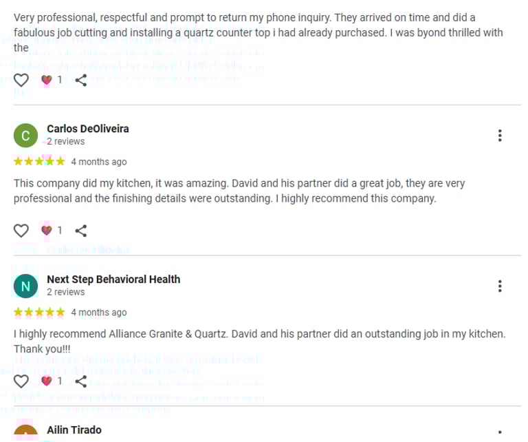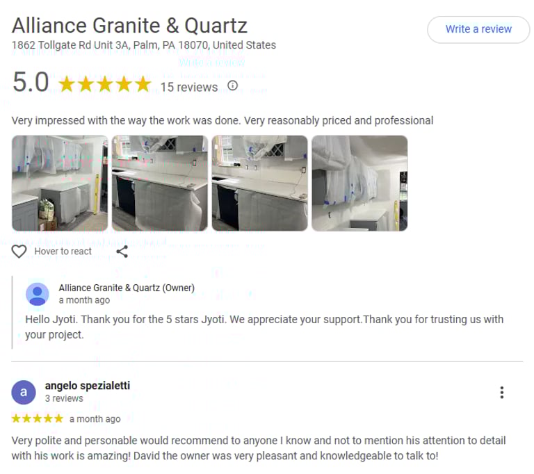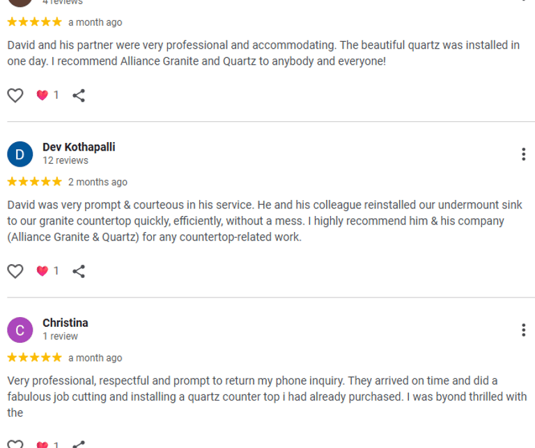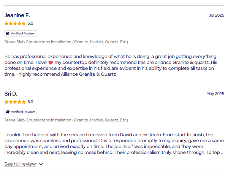 Alliance Granite & Marble provided excellent service and stunning countertops that transformed my kitchen beautifully.